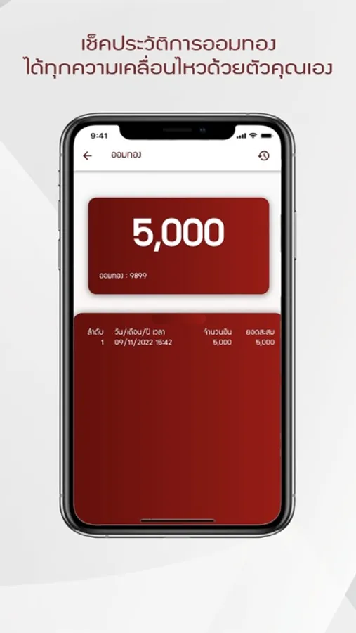 • ลดความยุ่งยาก สามารถดูความเคลื่อนไหวและประวัติ รายการขายฝาก, รายการซื้อสินค้า และออมทอง ได้ครบในแอพเดียว