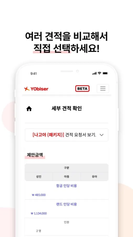합리적이며 가성비 좋은 금액을 제시 할 수 있습니다. 각 지역별 [요비서]전문 파트너사(여행사)들이 제시하는 가격을 한눈에 보고 직접 선택하여 제 값 주고 가는 여행으로 여행준비부터