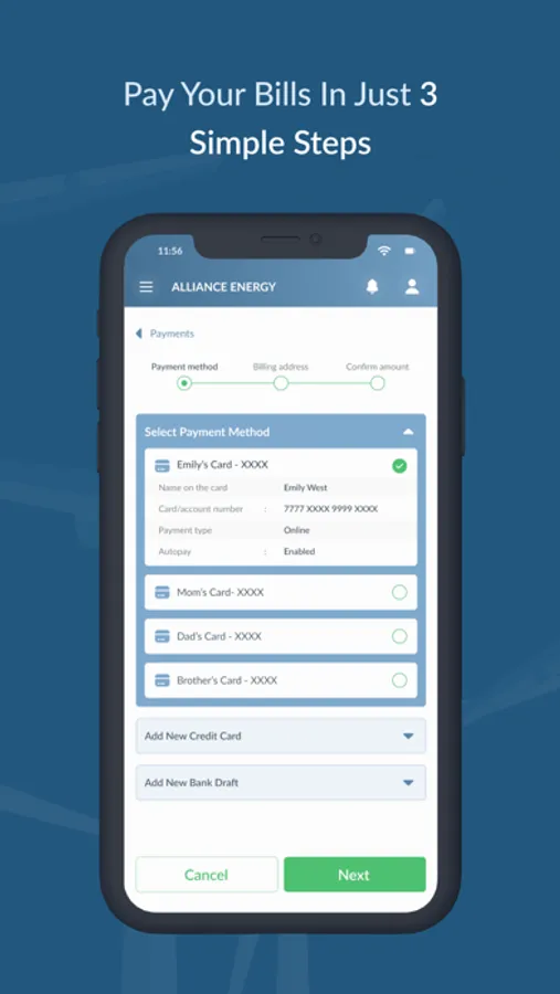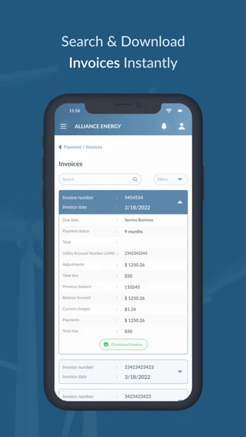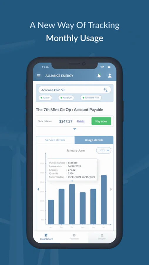 Alliance Power Company's customer engagement app enables customers to access their account balance details and make payments with just a few taps. The app also features a detailed payment history, allowing users to track their past transactions and monitor their usage.