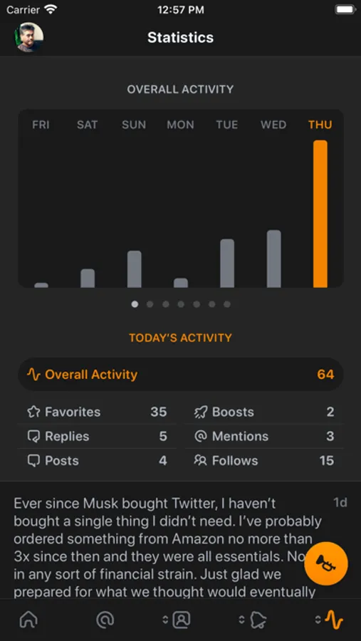 ⁃ View post statistics for the day and graph for the week in the stats tab