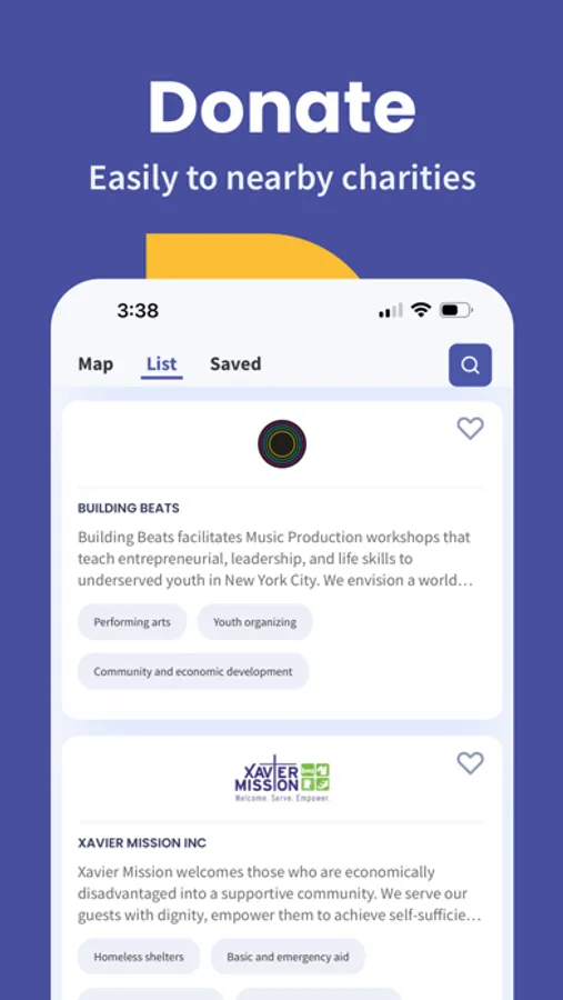 Not familiar with a particular nonprofit? No worries! Our partnership with Candid provides reliable third-party data, ensuring you're always informed. Our standardized Stat Cards further aid your decision-making, giving you a clear picture of each organization. Donating has never been easier. With a few simple taps, you can contribute securely, and as tax season approaches, our in-built donation tracker has got you covered.