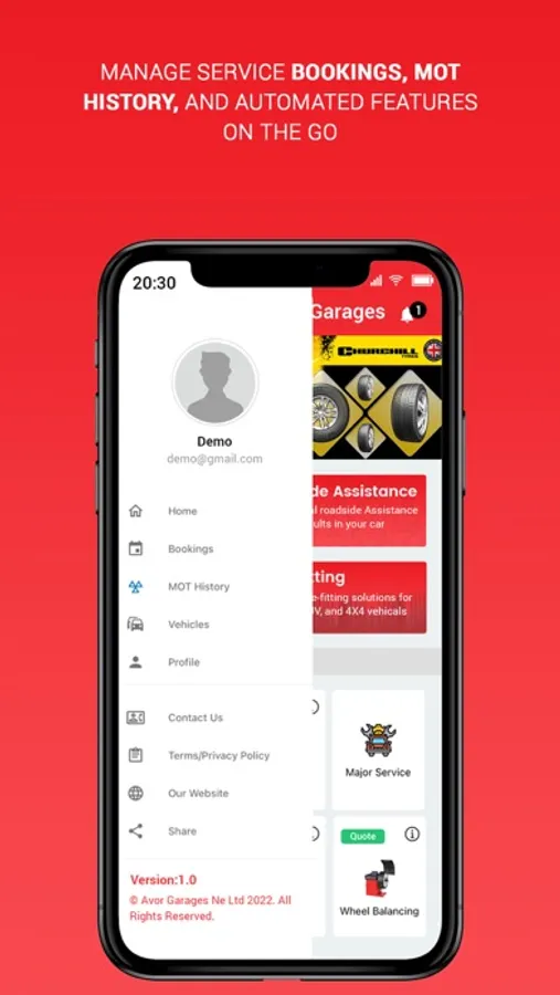 Track your MOT certificate and deadlines coming your way in one click. Get pop-up notifications for your MOT appointments and up-gradation of the vehicle. Explore through the app and find the ideal tyres from several tyre brands available for vehicles of all types in different sizes. Simply add the product or the service you wish to get in the service cart and get an overview of the prices then and there. You can also review your cart, service or product history and track other services through this app. Download the app now to avail exciting offers and great deals waiting for you in the Avor Garages app.