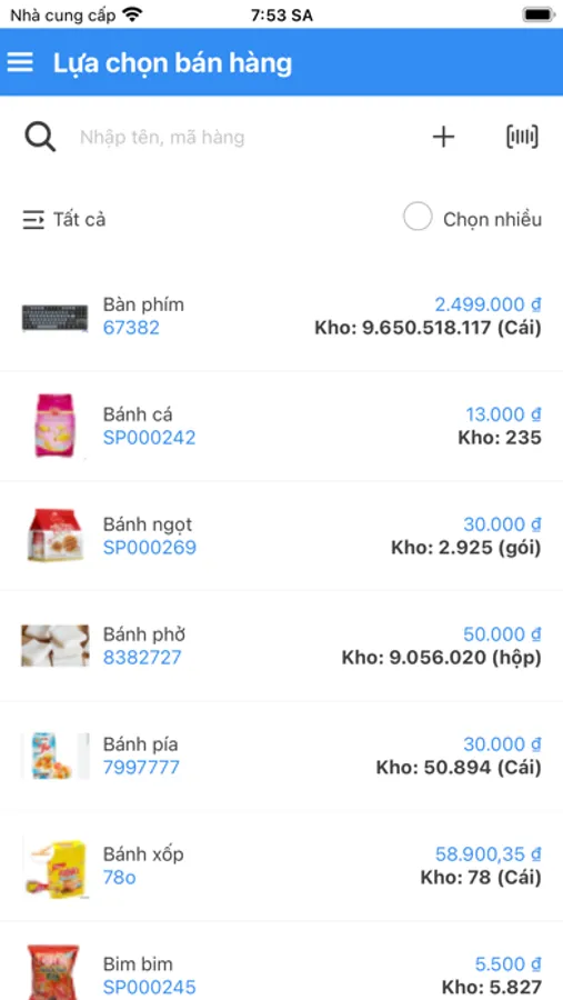 • Hiển thị thông tin hàng hóa trên hóa đơn khi in