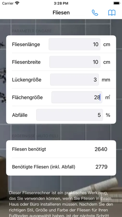 Dieser Kachelrechner benötigt zwar mehrere Werte, aber es bleibt ein einfaches und leicht zu verstehendes Online-Tool. Damit müssen Sie keine Berechnungen von Hand durchführen, nur um herauszufinden, wie viele Fliesen Sie für Ihr Projekt benötigen