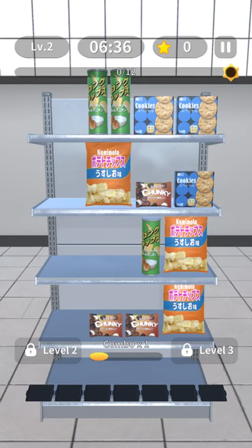 - Keep doing it until you clear all the items on the shelf and you win the level,