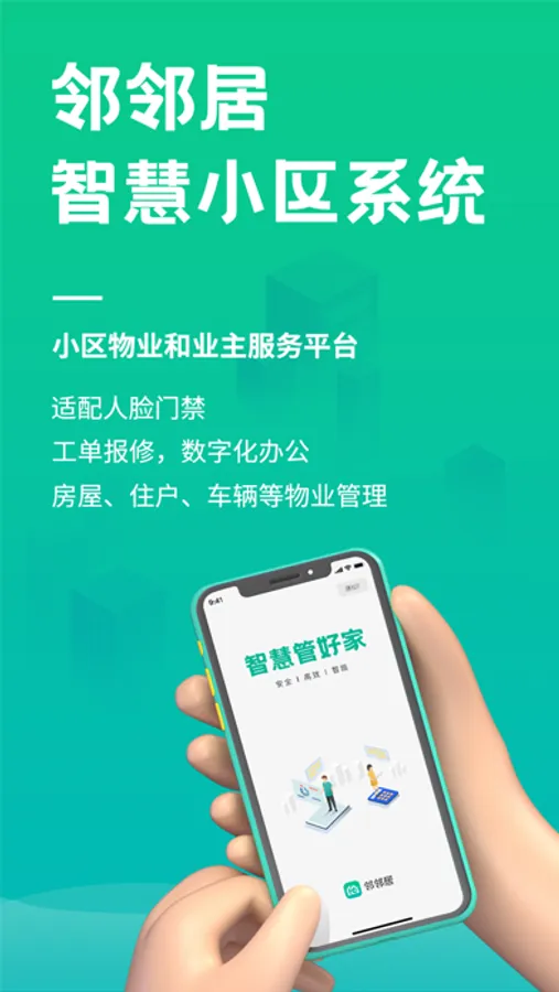邻邻居,是一款小区生活服务软件,一个app区分业主和物业,一个app满足业主和物业的两端需求。提供小区交流、智能门禁、工单报修、投票建议等功能,将小区服务智能化,线上化,致力于优化社区服务、提升社区安全、促进邻里交流,与您相伴,智享生活!