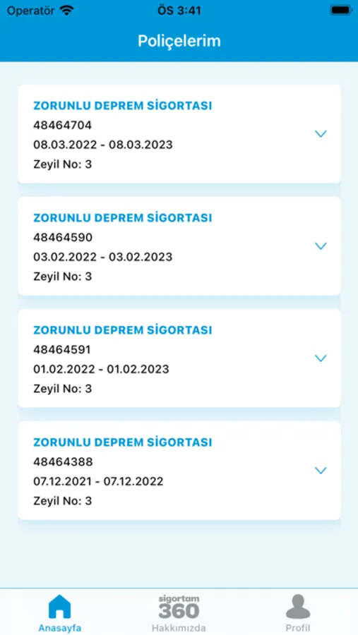 Sigorta sektörünün tüm poliçe ve hasar bilgilerini gelişmiş teknolojik alt yapısıyla anlık olarak toplayan Sigorta Bilgi ve Gözetim Merkezi tarafından sunulan Sigortam360 mobil uygulaması ile poliçelerinizi görüntüleyebileceksiniz.