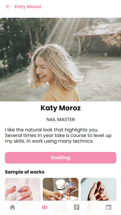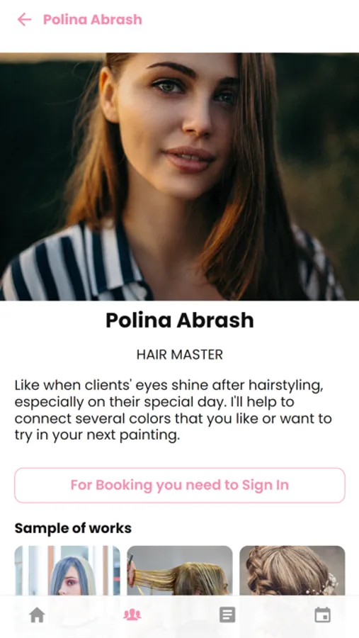 In this app, you could choose beauty master, service, and booking time for a visit.