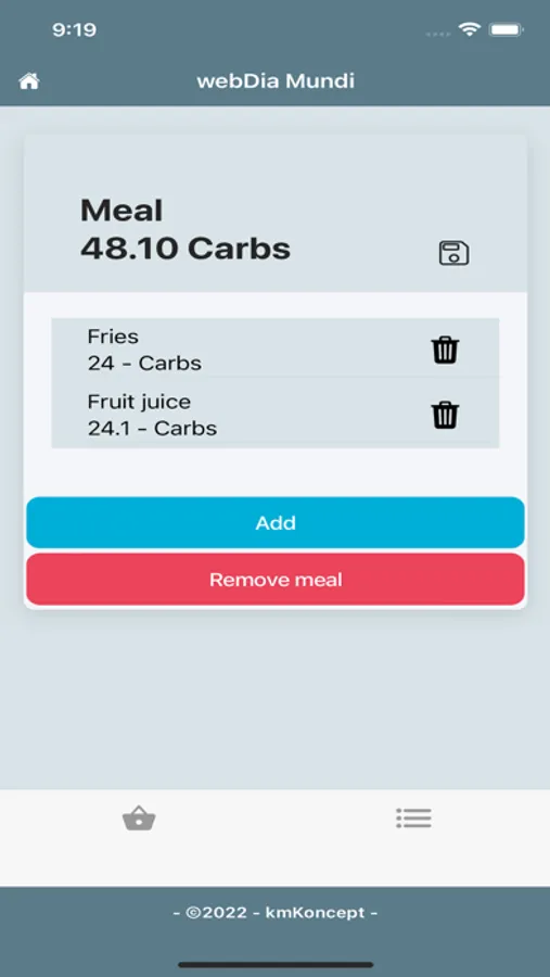 webDia Mundi allows you to calculate the amount of carbohydrates in your food and meals