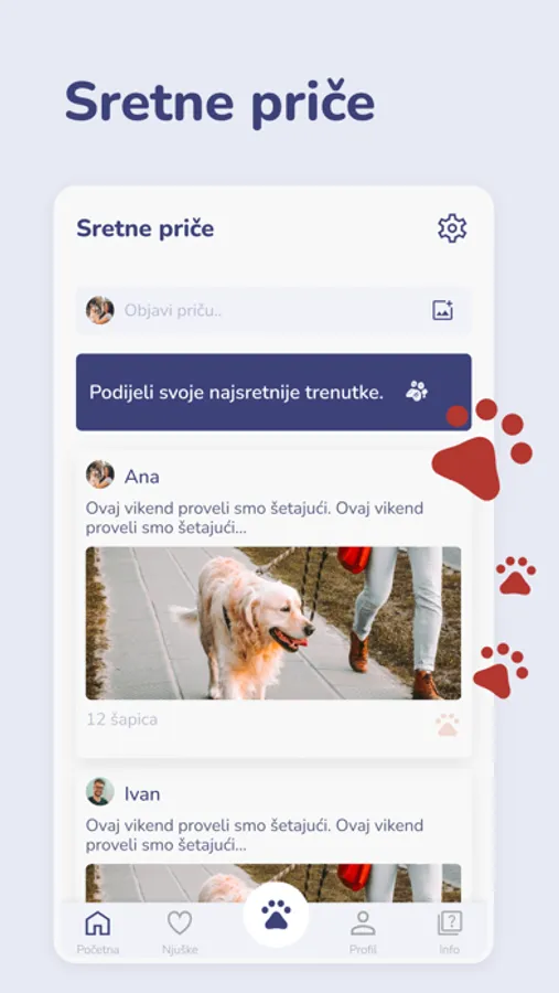 • Sretne priče – bilo da dijeliš fotografije njuški s privremenog smještaja, iz šetnje Indigo njuški oko jezera Rakitje ili bivših Indigo njuški iz Zauvijek doma – svaka sretna priča je dobro došla i uljepšat će dan nekome.