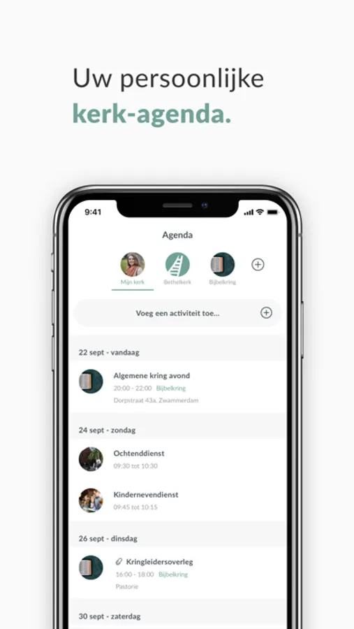 Dankzij onze unieke groepenstructuur helpen wij kerken beter te communiceren. Met de hele gemeenschap, maar ook onderling. U kunt zelf groepen toevoegen en mensen daarvoor uitnodigen. Een slimme timeline zorgt er voor dat iedere gebruiker persoonlijke en relevante informatie ziet.