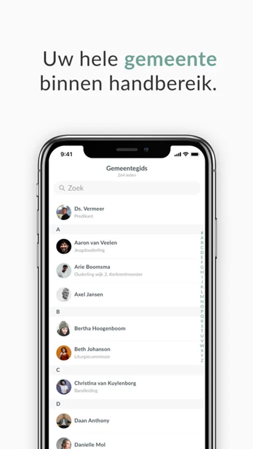 Wie zoekt er tegenwoordig nog een telefoonnummer op in het telefoonboek? Vrijwel niemand! Dankzij de gemeentegids feature is iedereen binnen uw kerkelijke gemeente terug te vinden. Snel berichten sturen, naar een adres navigeren of zien wat iemands rol in de kerk is? Met de digitale gemeentegids wordt het makkelijk.