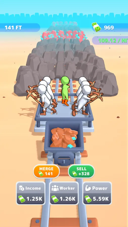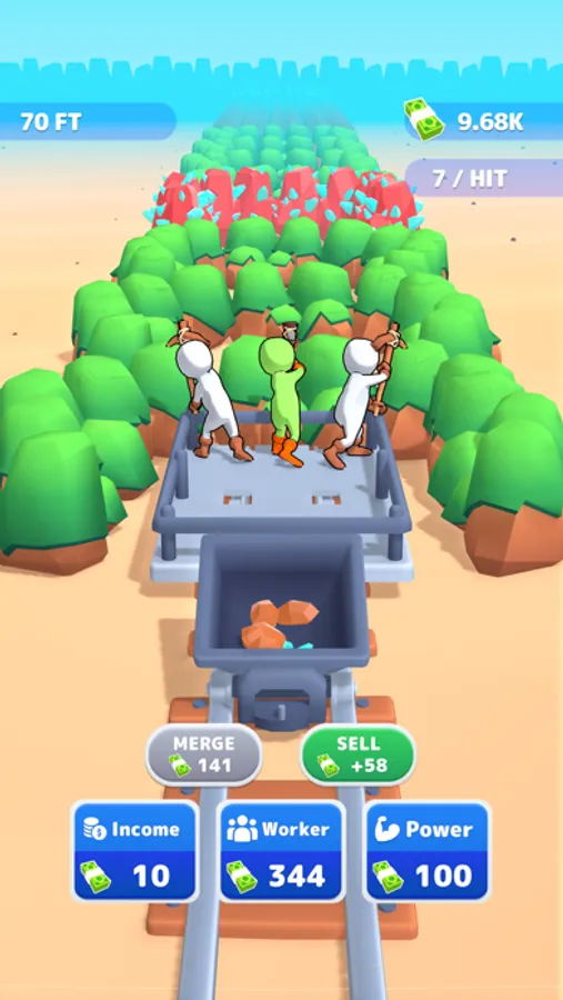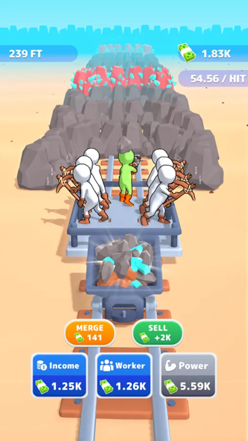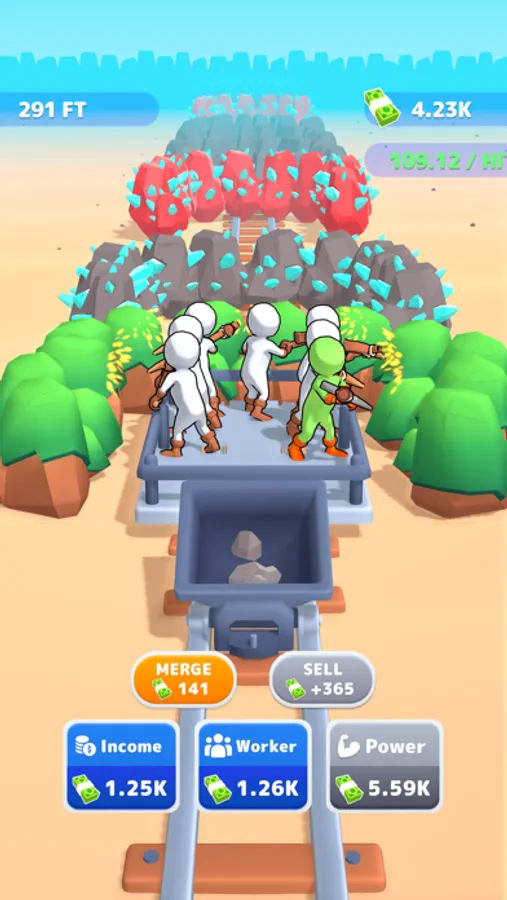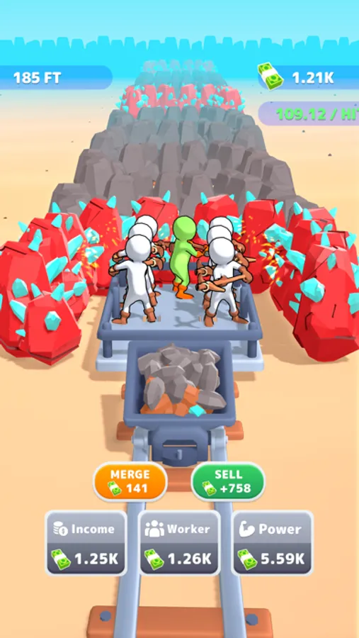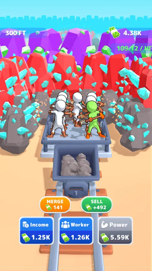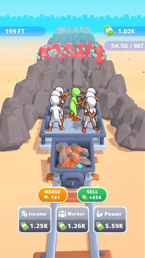 Collect jewels and sell! Hire miner!, merge and evolve, form the most powerful miner squad of all time!