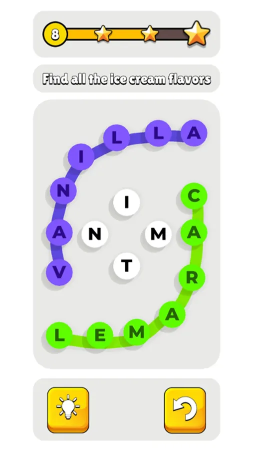 A relaxing word search game with a juicy control.