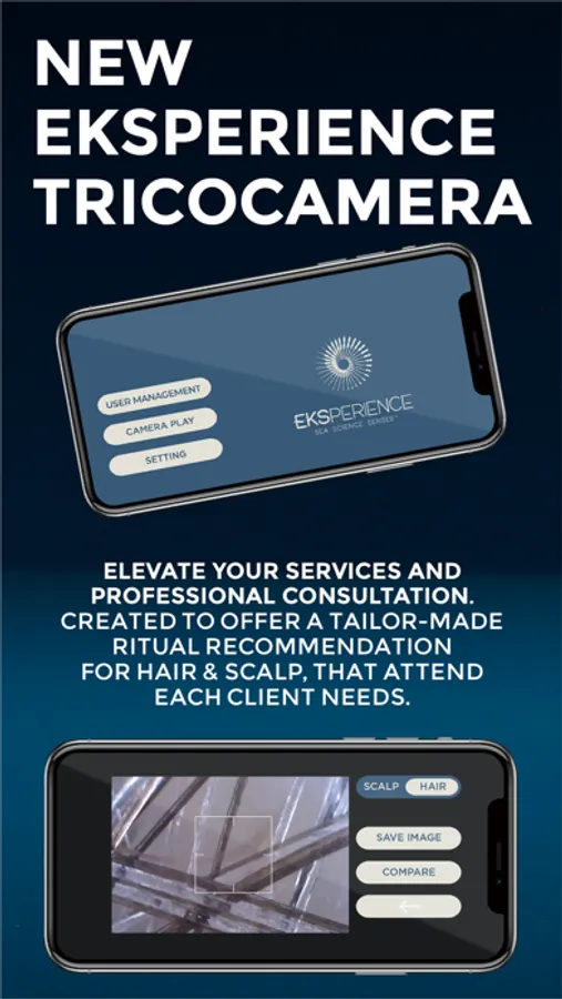 The new EksperienceTM Tricocamera App is a technological tool which delivers a precise diagnostic for Hair & Scalp. Created to offer a tailor-made professional recommendation, this new tool elevates your knowledge to the Expert level, so you can attend each client needs and wishes