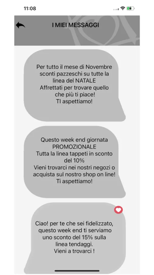 - Ricevere messaggi promozionali nell'aera Messaggi