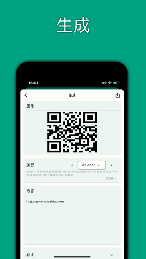 支持的二维码类型:QR CODE(二维码), PDF417, Data Matrix, Aztec。