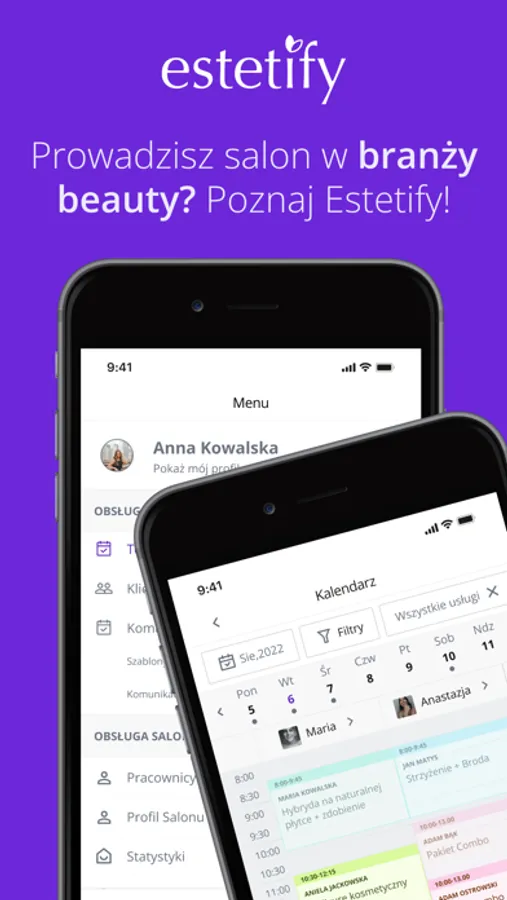 Estetify to narzędzie stworzone z myślą o osobach, które chcą mieć pełną kontrolę nad swoim biznesem. To platforma skupiająca się na planowaniu, zarządzaniu i obsłudze klienta w branży beauty. Dla fryzjerów, barberów, kosmetologów, stylistek, manikiurzystek, podologów, tatuatorów i innych. Wiemy, że prawdziwa wartość wynika z dobrej obsługi klientów, nawet zanim jeszcze przybędą do salonu, dlatego Estetify to nie tylko kalendarz. Estetify to dbanie o relacje.