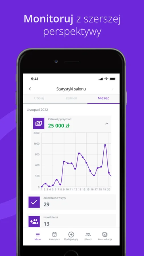 - Szczegóły Twojego biznesu - Sprawdzaj dzienne, tygodniowe i miesięczne statystyki,