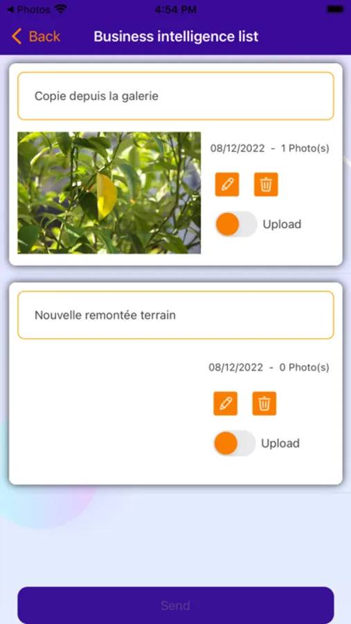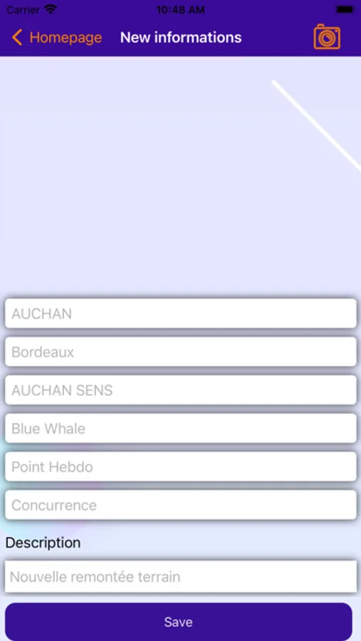 - Prendre des photos, sélectionner des critères de remontées prédéfinis par le siège, saisir du commentaire