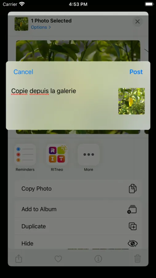 - Possibilité d’ajouter au RIT des photos depuis la galerie (fonction partager)