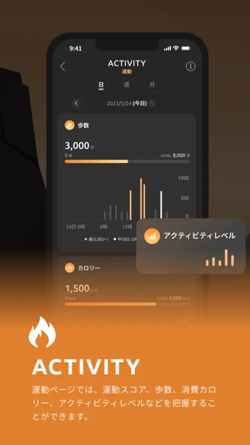 アクティビティレベル、歩数、消費カロリーなどを総合的に評価して算出されたスコアです。