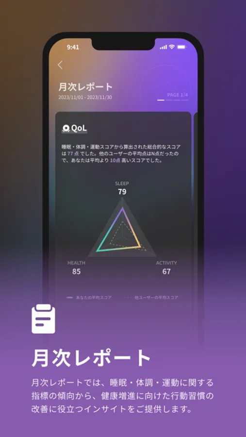 睡眠時間、睡眠の深さ、睡眠効率、睡眠負債を総合的に評価して算出されたスコアです。
