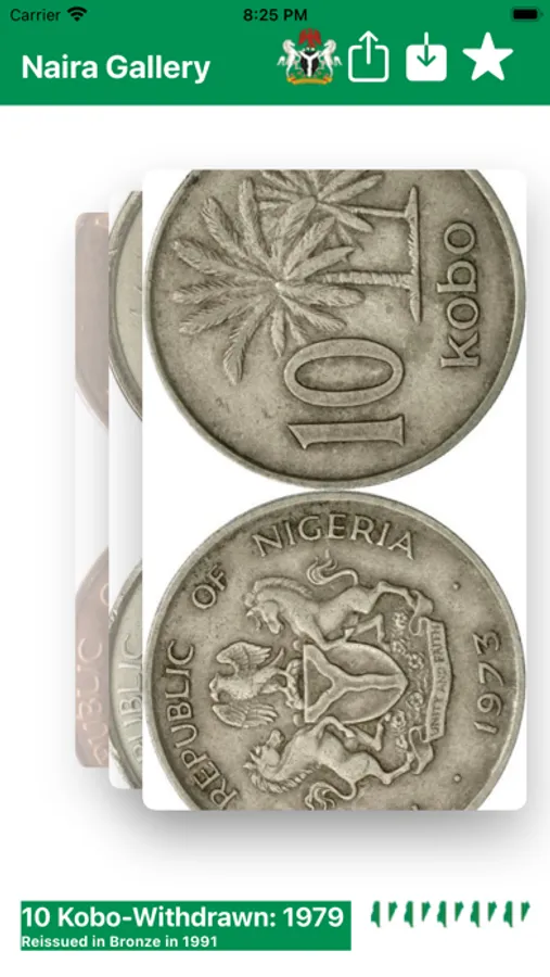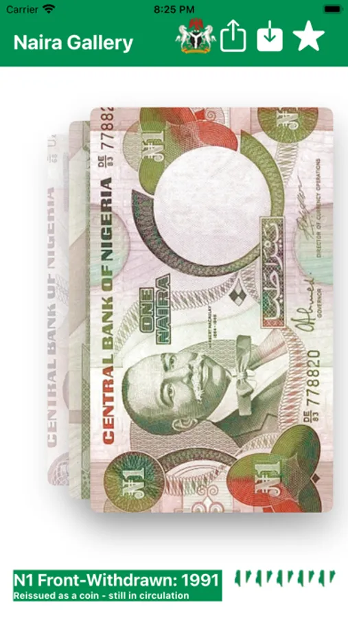On 2nd July, 1979, new currency banknotes of three denominations, namely ₦1, ₦5 and ₦10 were introduced. In order to facilitate identification, distinctive colours were used for the various denominations. The notes bore the portraits of three eminent Nigerians, who were declared national heroes on 1st October, 1978. The engravings at the back of the notes reflected various cultural aspects of the country.