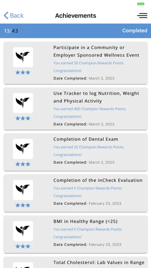 • Achieve health goals and receive awards