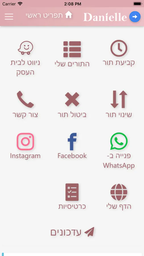 באפליקציה אפשר לקבוע תור, לנווט באמצעות Waze ולפנות אליי באמצעות WhatsApp.
