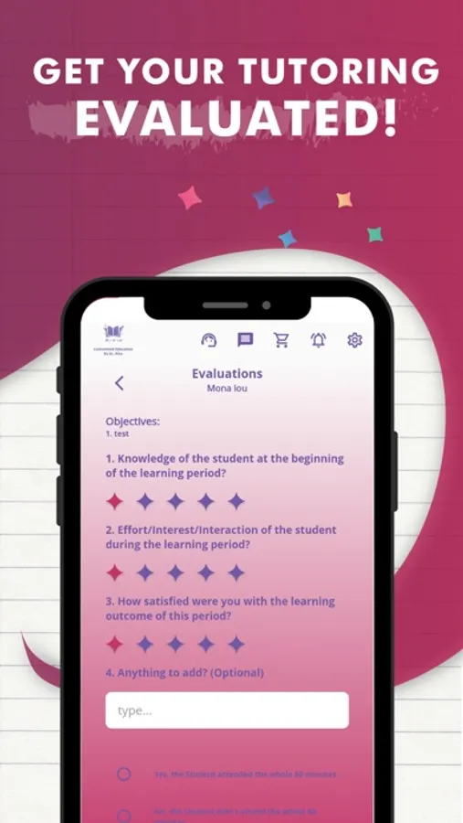 At the end of each session, both the Student and the Tutor fill an Evaluation Form through the APP, that is automatically sent to the Education Specialist to follow-up on the tutoring. Educational Development is our #1 priority.