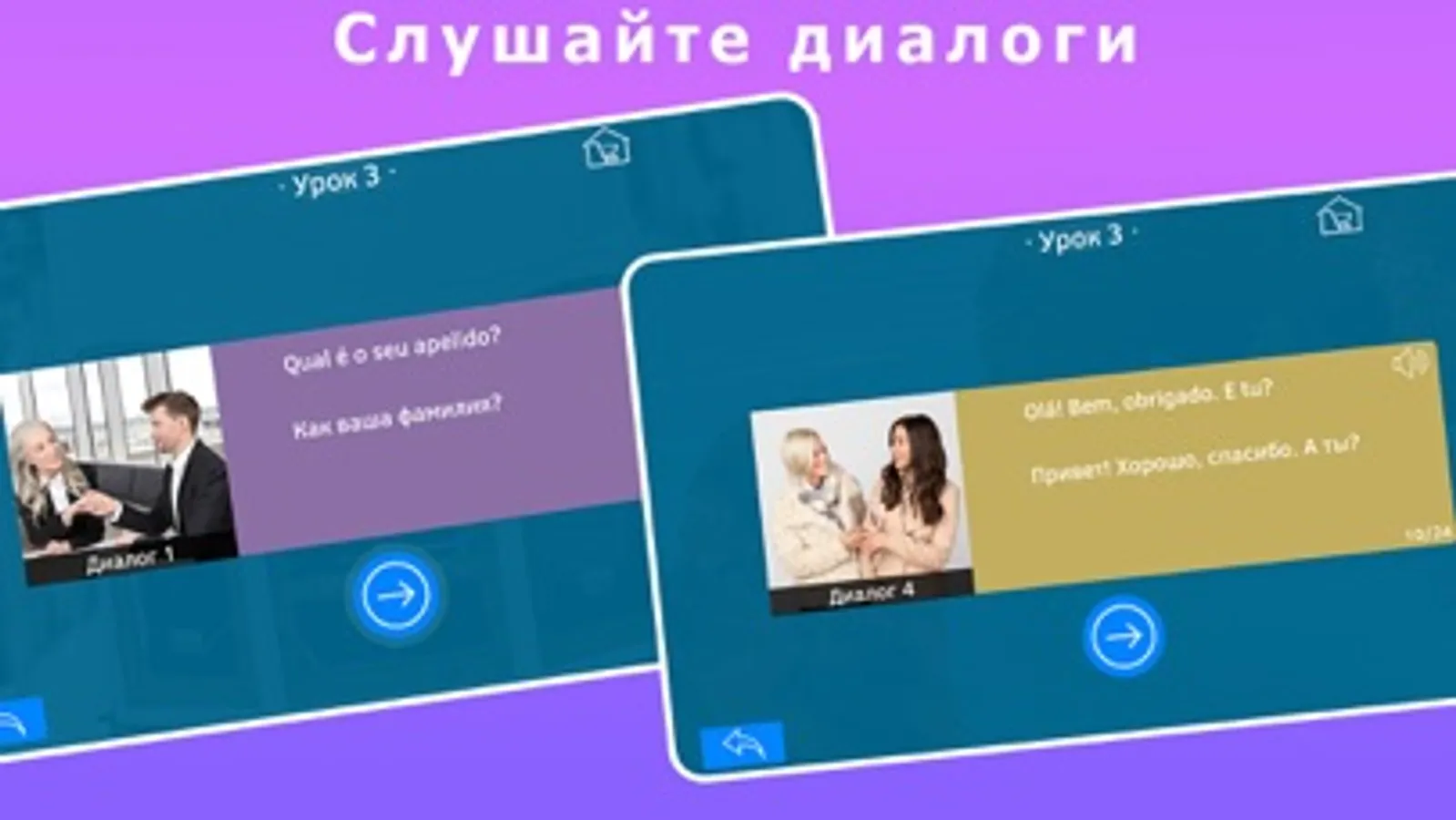 В Gloss нет никаких скучных правил. Просто учитесь слушать, запоминайте слова, фразы и диалоги для быстрого интегрирования в Португалии.