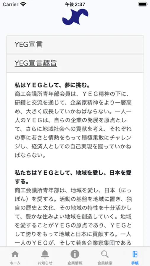 YEG手帳アプリは、商工会議所青年部に所属するメンバーにてご利用いただけます。