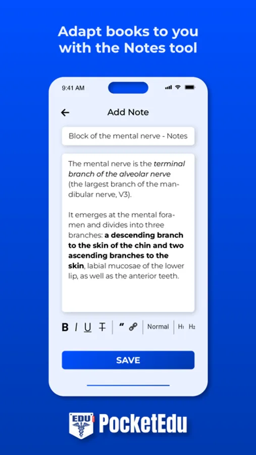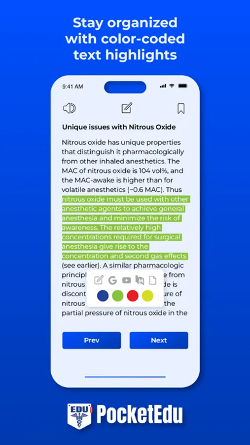 Keeping bulky, outdated books sitting around becomes a thing of the past with PocketEdu. Each new edition of the books available on PocketEDU is added as it comes out. Access standardized medical content from anywhere in the world, and personalize that content to best suit your study needs.