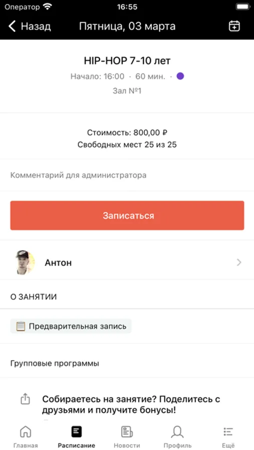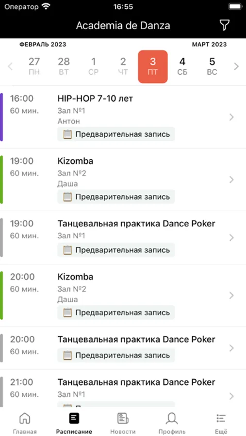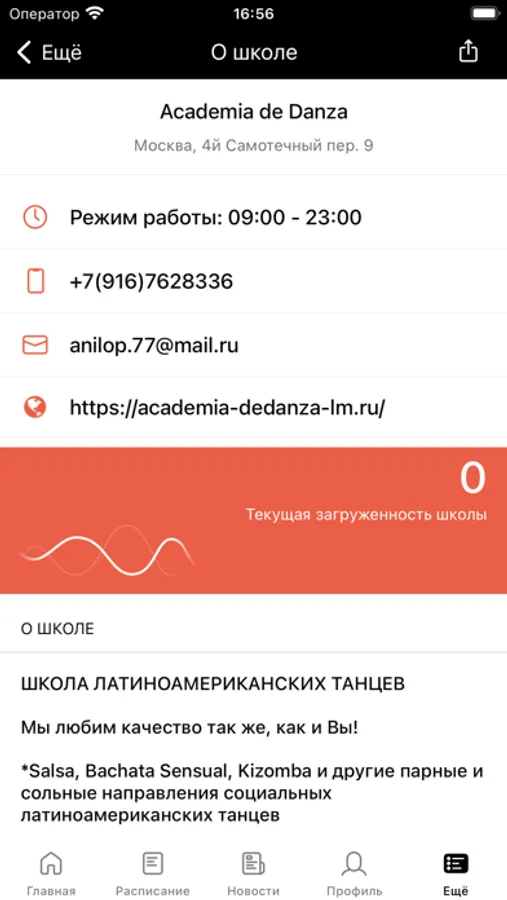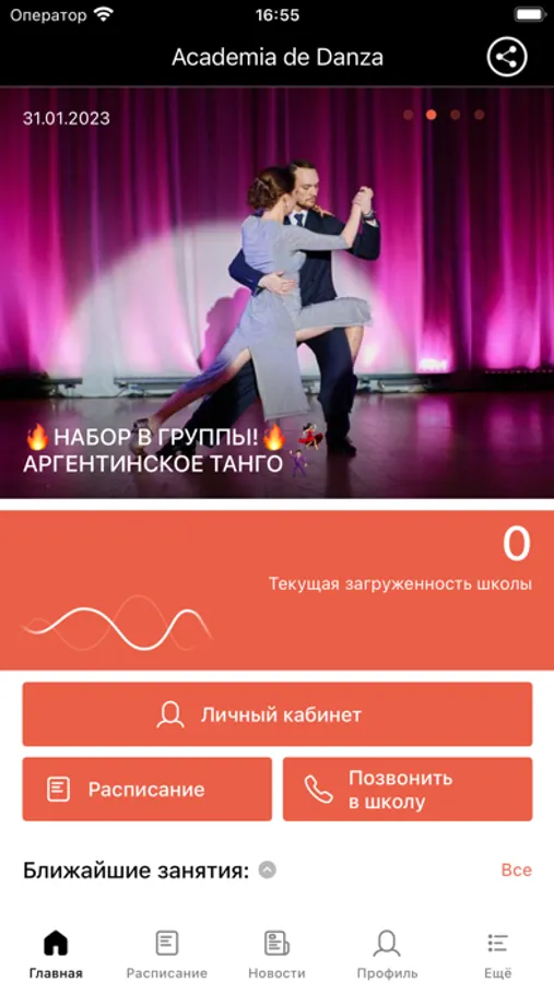 С помощью приложения вы можете следить за новостями, расписанием Академии, записаться на занятия, отслеживать количество занятий по абонементам, оперативно получать информацию об изменениях в расписании и специальных предложениях и много другого.