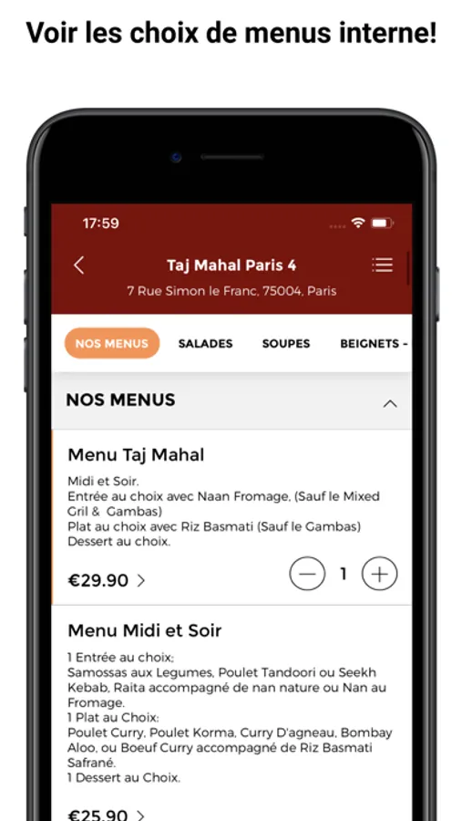 Commandez en quelques clics avec Taj Mahal Paris 4 ! N’attendez plus et faites-vous plaisir ! En livraison ou à emporter, vos plats favoris vous attendent chez Taj Mahal Paris 4 !