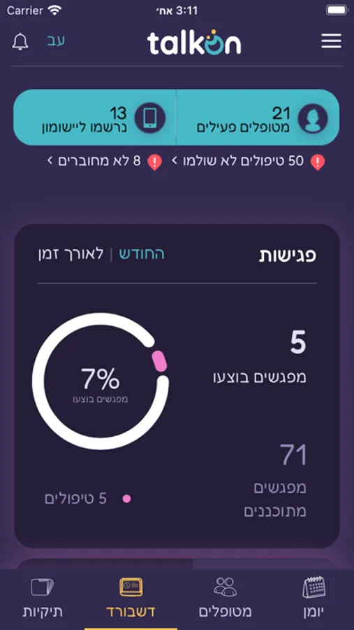 Talkon is an SLP (Speech-Language Pathology) software that streamlines administrative tasks and therapeutic processes, providing a full suite of administrative tools for SLPs. It empowers the therapy circle of therapist-parent-client and enables parents to receive ongoing feedback from the SLP through an integrated app. Talkon improves decision-making on the professional and managerial levels and saves precious time, making work significantly easier. With end-to-end management of clinical programs, Talkon is the perfect solution for SLPs looking to provide outstanding service with modern technology.