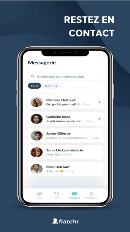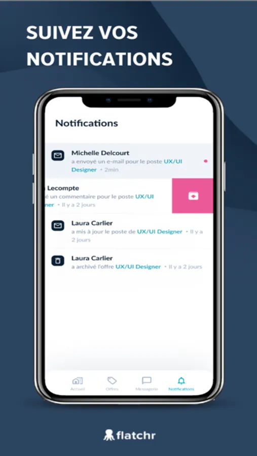 Plus besoin d’ouvrir votre ordinateur, Flatchr se glisse simplement dans votre quotidien et vous permet de ne laisser filer aucun candidat intéressant.
