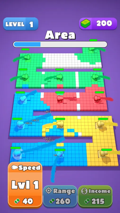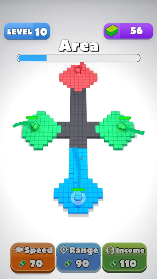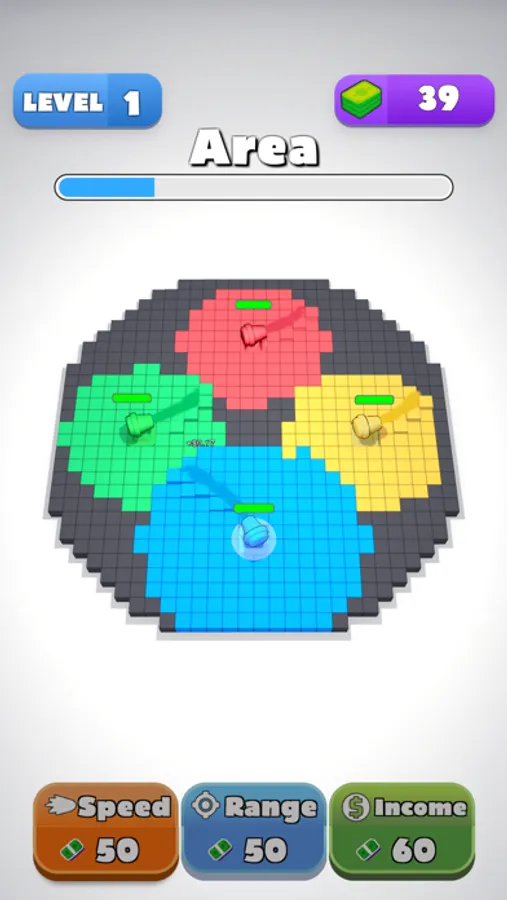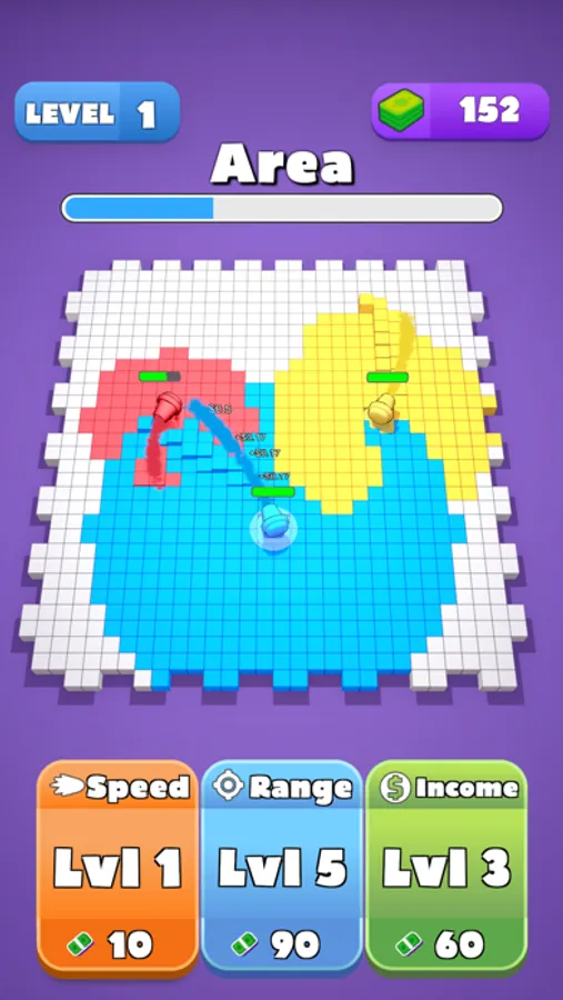 Think strategically and use boosters to capture all. But be careful you must color everywhere. Tap faster and expand your superiority in the area. You should reach your opponents first and conquer them. They will join you, and help with paint. This game demands tactics, not power. You should use your brain, not your muscles! You will have a lot of fun with different levels that are added specially for you! Are you ready to conquer all areas by painting and, writing your own story?