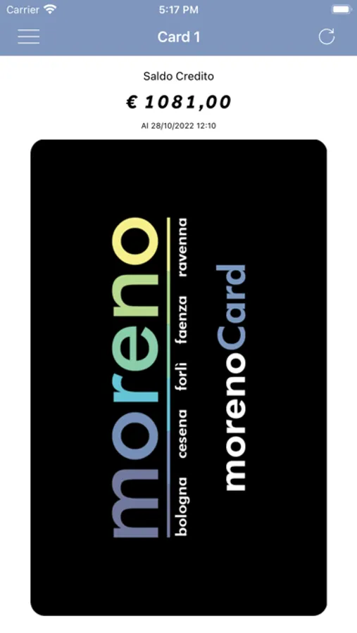Con Moreno Card potrai controllare i tuoi crediti disponibili e lo storico dei movimenti.