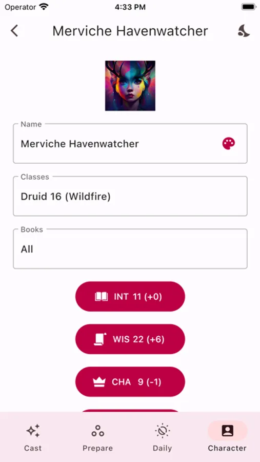 *CALCULATIONS: The app will automatically calculate all the important stats for your caster (that you can still modify if needed), including spell save DC, spell attack modifier, spell slots, cantrips known, spells known and number of spells you can prepare!