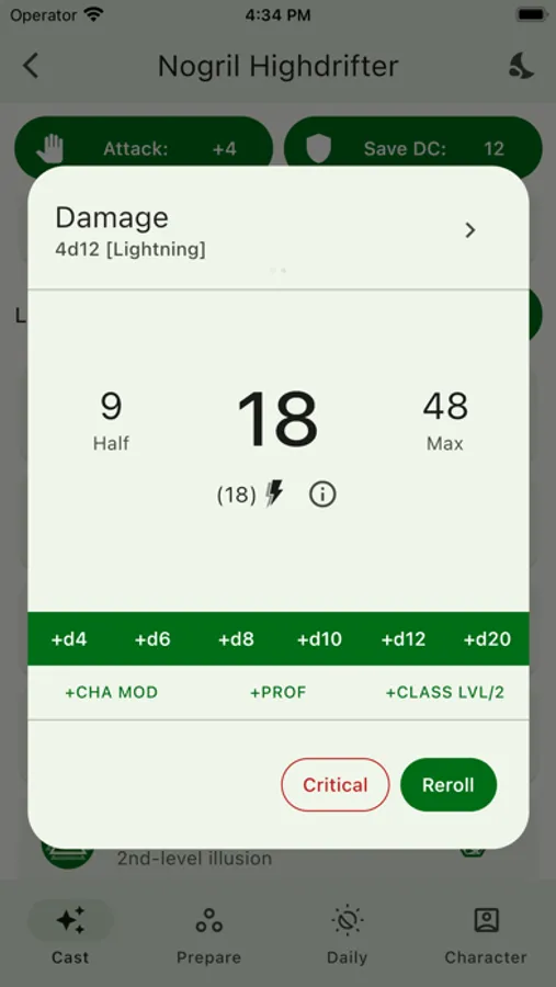 *DICE ROLLER: All spells that have a spell attack or contain a roll formula (every built-in spell that deals damage, heals, etc. does, and you can add your own formulas in your homebrew spells) have an additional option to also roll the dice!