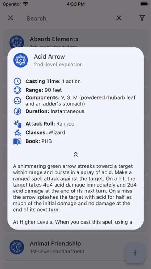 *FILTERS: A vast array of different filters will help you find spells quickly and efficiently.