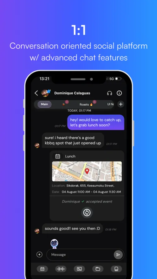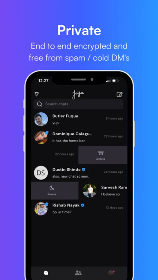 Connection on Joyn is intentional and private, as a result names aren’t searchable. You can connect with people through unique links, phone contacts, Joyn-specific secret phrase, and AI-selected introductions.