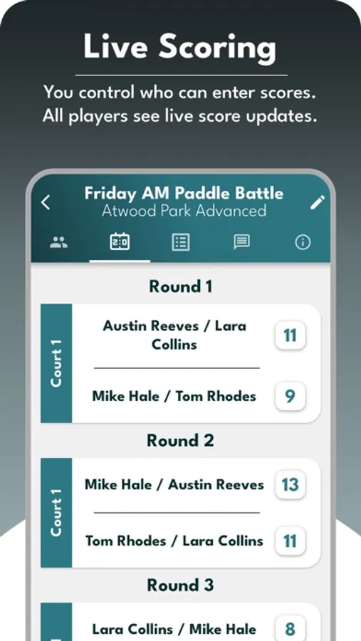 - Round Robin Types: Customize your round robin events with fixed partner or rotating partner setups. Option to mix players between divisions.