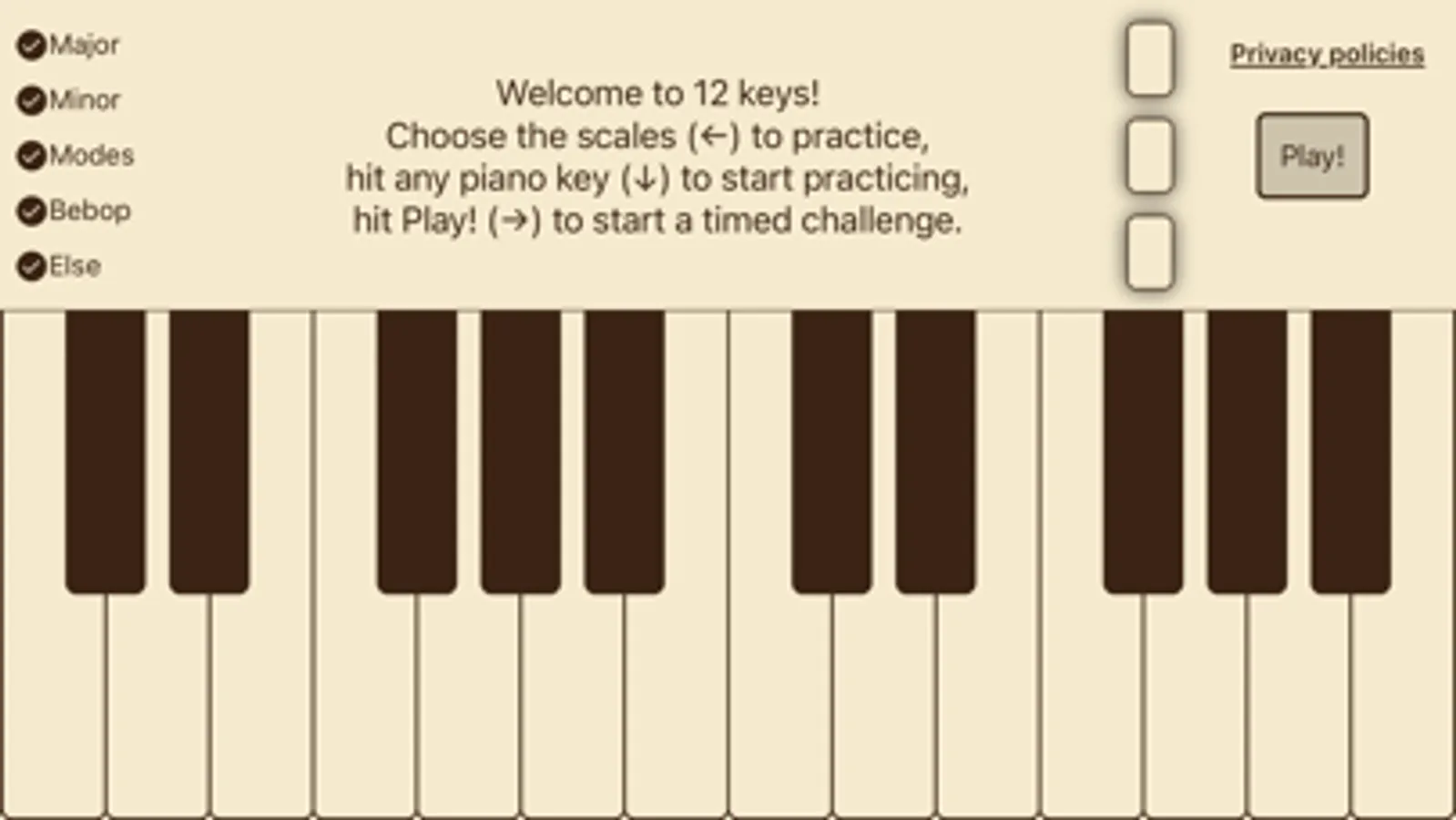 As a musician, to become a master in all 12 keys, you need to practice your fluency. This app will help you work on your scales and modes. There is also a fun timed challenge.