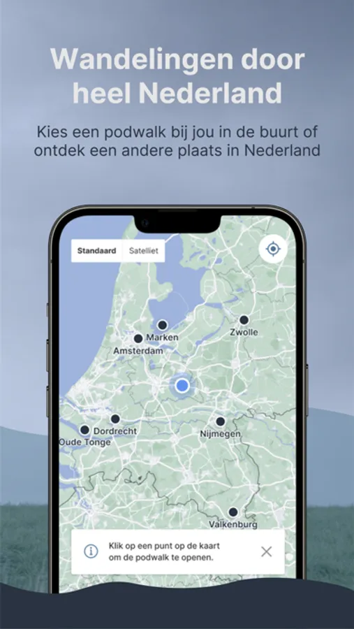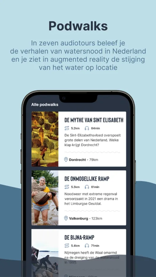 Met de podwalk app wandel en luister je tegelijkertijd. Wandel mee met Winfried Baijens door gebieden in Nederland en luister naar verhalen over watersnoodrampen uit de geschiedenis en over de bescherming tegen het water in de toekomst.