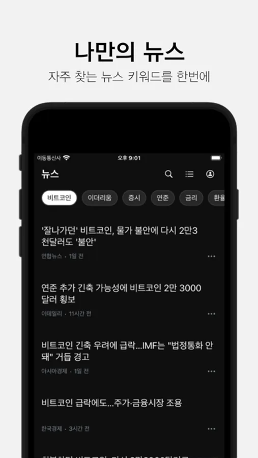 - 자주 찾는 키워드를 추가하여 한번에 볼 수 있는 뉴스 화면