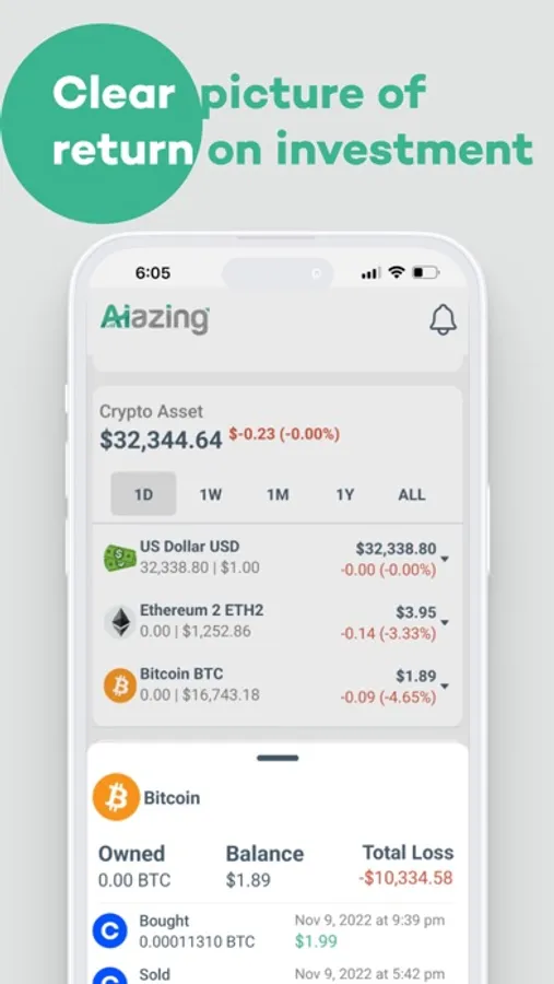 Stay on top of your crypto portfolio with Aiazing's comprehensive tracking features. Receive real-time alerts when your investments change, and monitor your portfolio's value, returns, and performance.