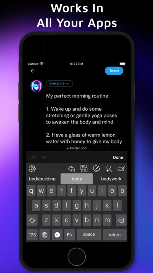 Write Faster and Smarter anytime in any app with the power of the AI assistant at your fingertips.